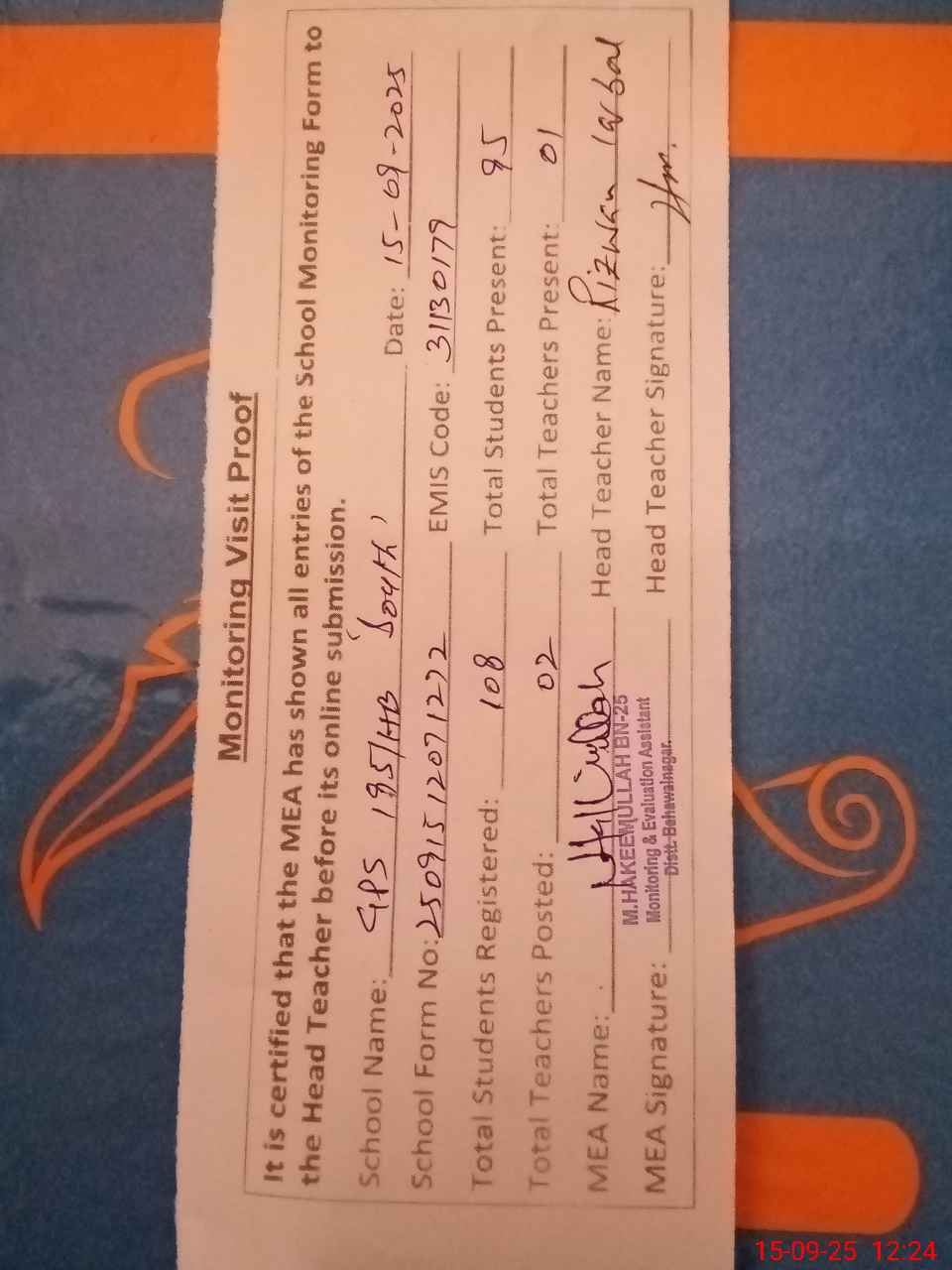 | EMIS Code: 31130179 | Name of School: GPS CHAK NO.195/HB (S) | |||