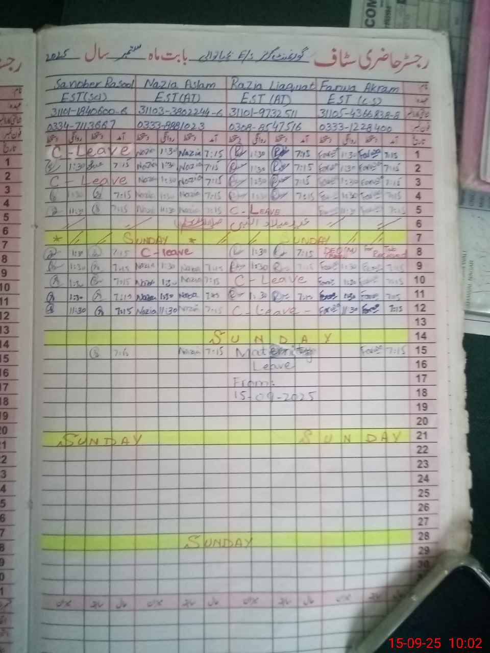 | Leave | Duty | Absent | Maternity | Medical | Ex- Pak |