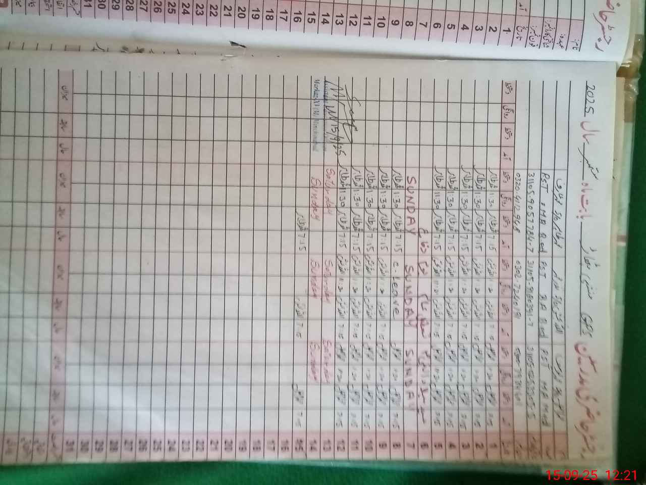 | CNIC | Full Name | Designation | R/C | Absence During Last Calender Month |