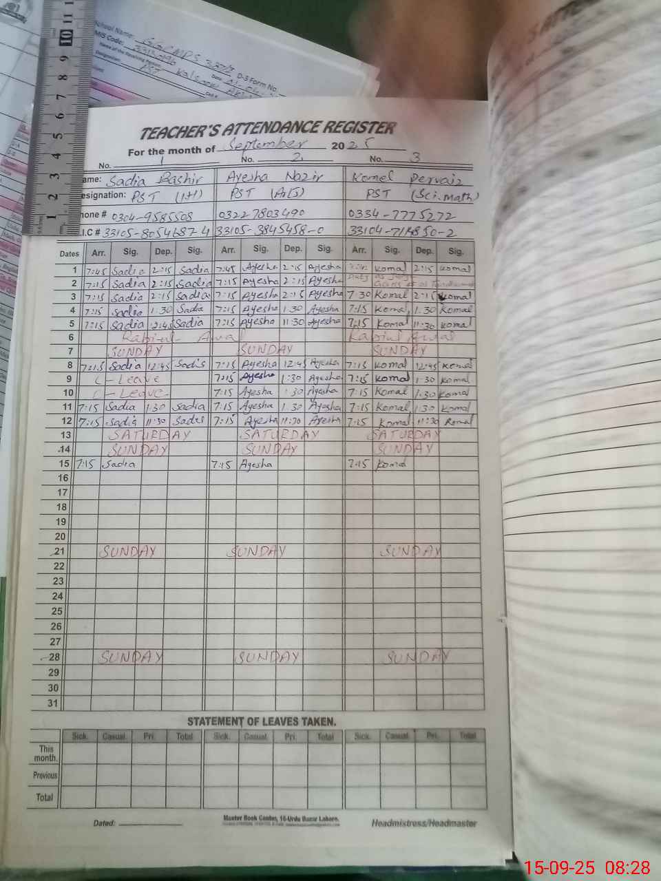 | Name: SA**** BA**** Designation: (School Headmaster's/Headmistress's) PST Phone/Cell Number: 03**** |
