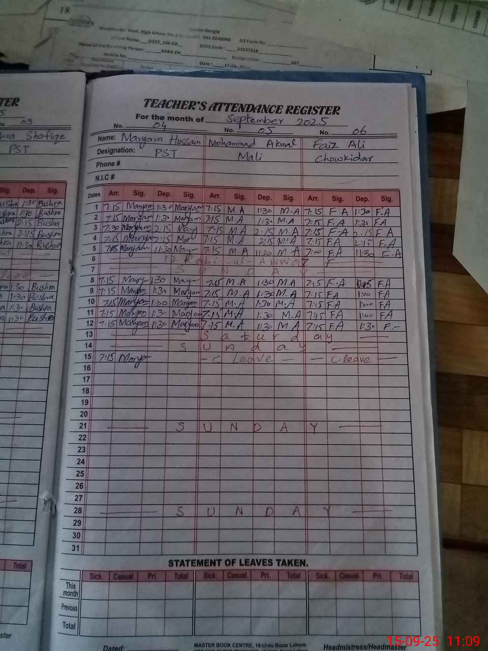 | 33**** | FA**** AL**** | CKDR | Regular | 2 | 0 | 0 | 0 | 0 | 0 | 0 | 0 | 2 | Absent (Un-Authorized) |