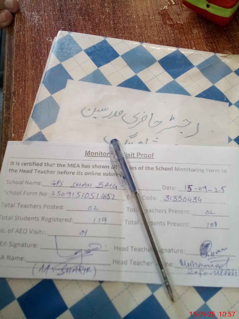 | EMIS Code: 31330484 | Name of School: GPS SHAH BAIG | |||