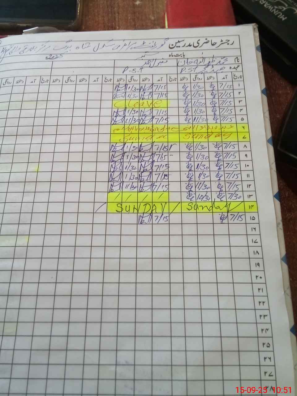 | Name: MU**** Za**** Ul**** Kh**** Designation: (School Headmaster's/Headmistress's) PST/ESE Phone/Cell Number: 03**** |