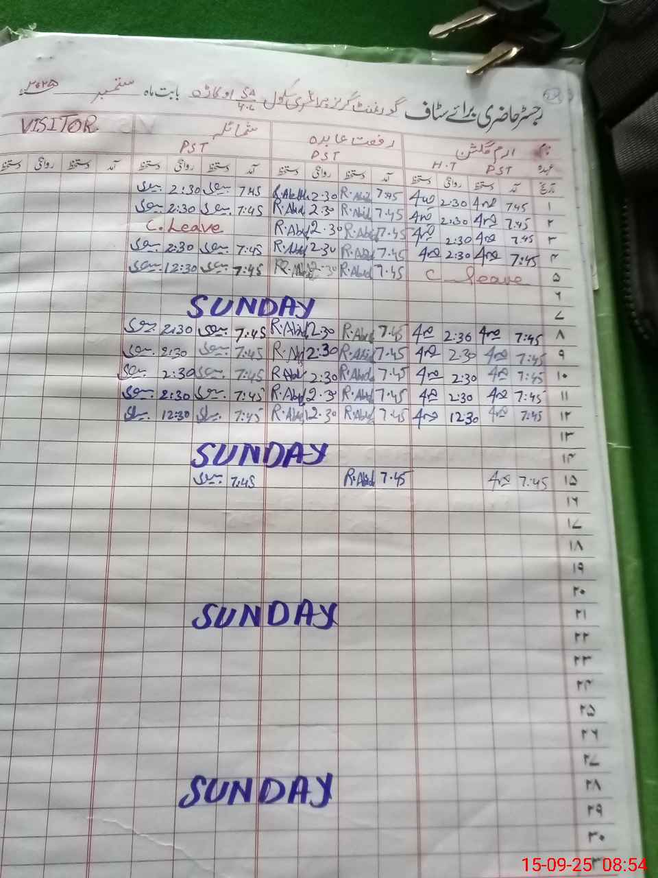 | Leave | Duty | Absent | Maternity | Medical | Ex- Pak |