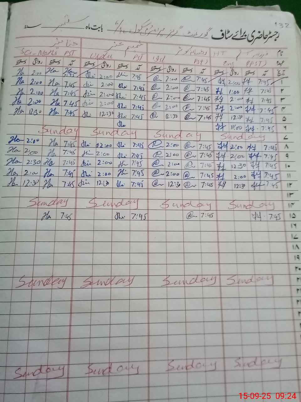 | CNIC | Full Name | Designation | R/C | Absence During Last Calender Month |