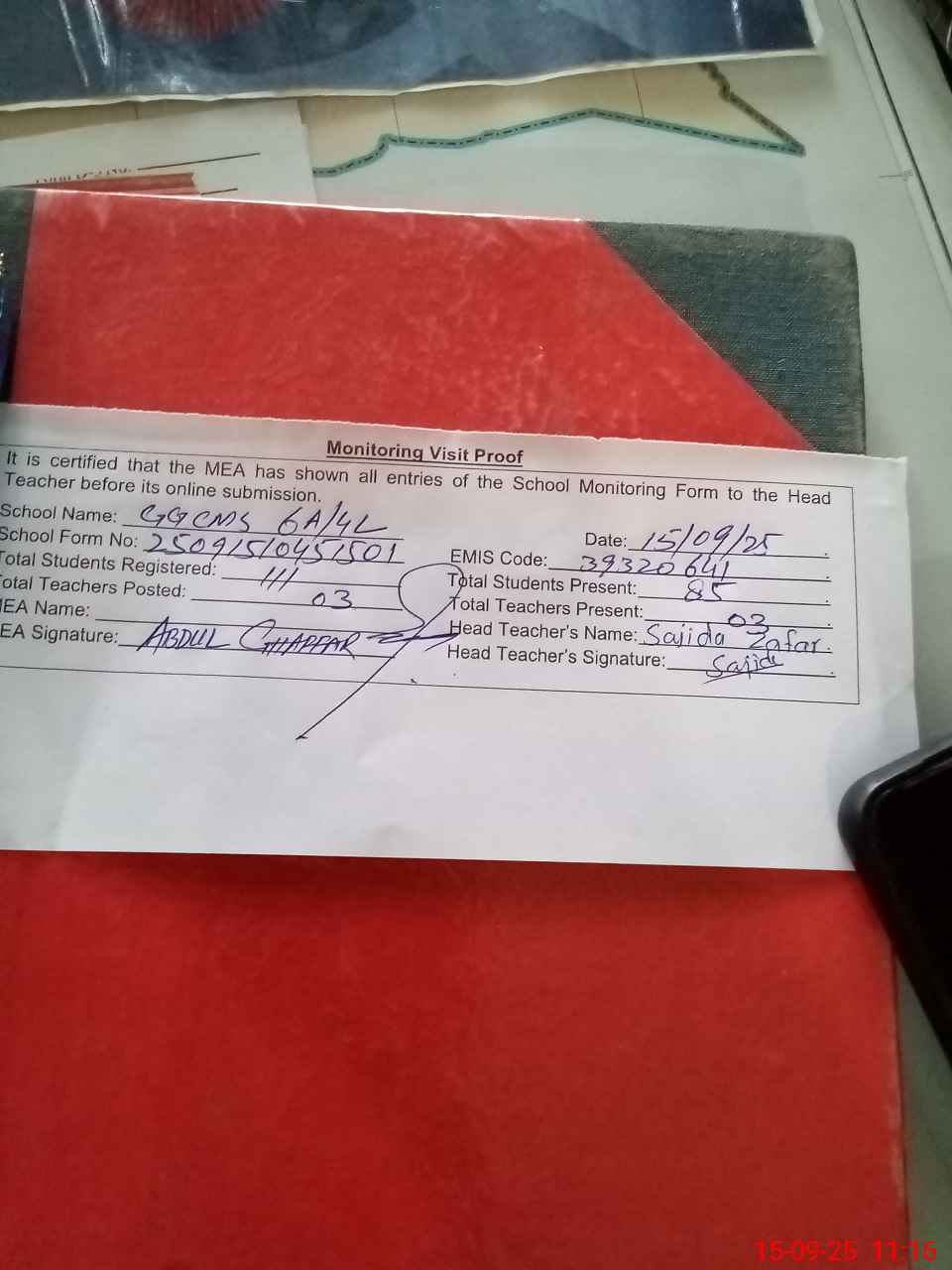 | EMIS Code: 39320641 | Name of School: GGCMS 6-A/4-L | |||