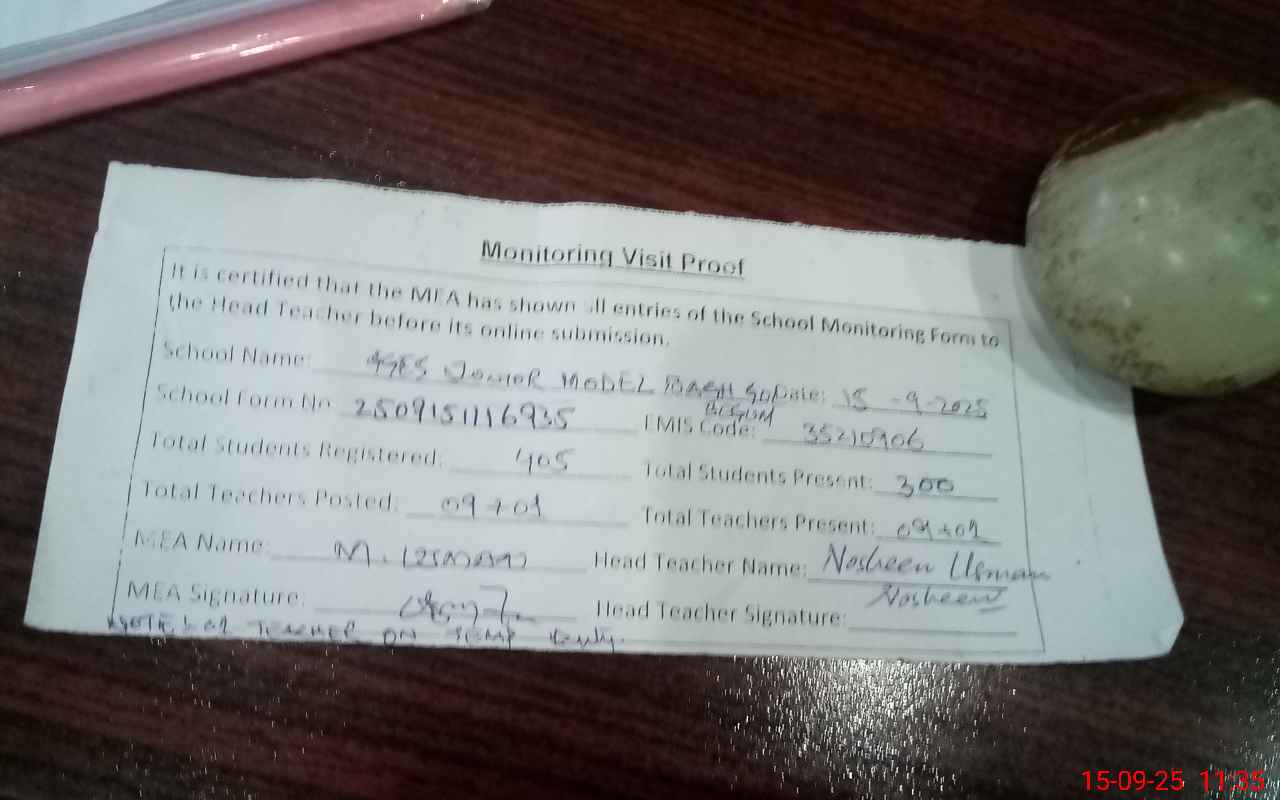 | EMIS Code: 35210906 | Name of School: GGES JUNIOR MODEL BAGH GUL BEGUM NEW MOZANG (EX-MCL) | |||
