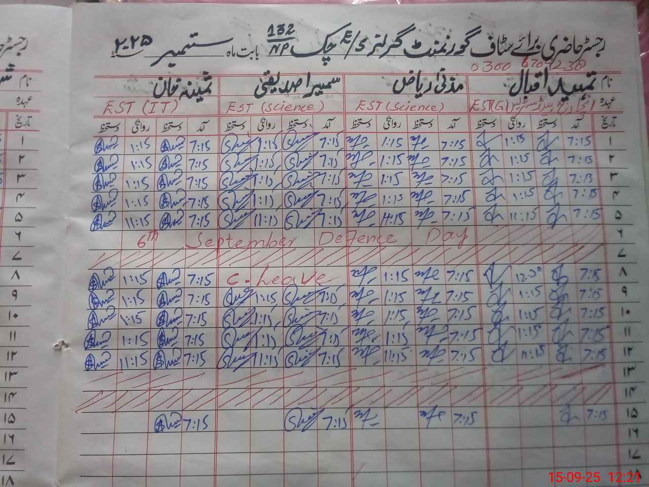 | Name: MU**** SU**** Designation: (School Headmaster's/Headmistress's) S.S.T.(G) Phone/Cell Number: 03**** |