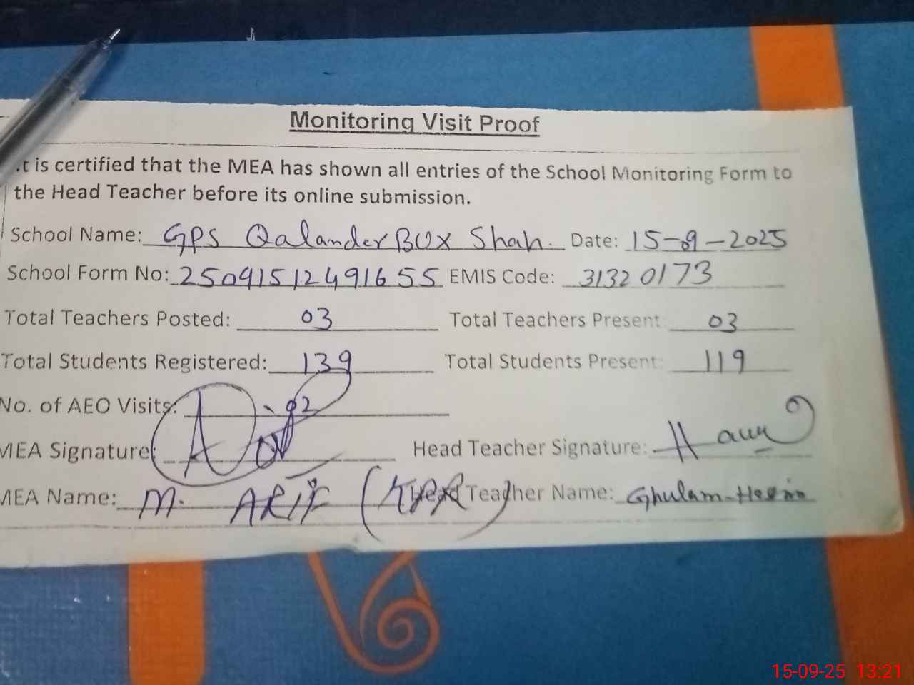 | EMIS Code: 31320173 | Name of School: GPS QALANDER BUKHASH | |||