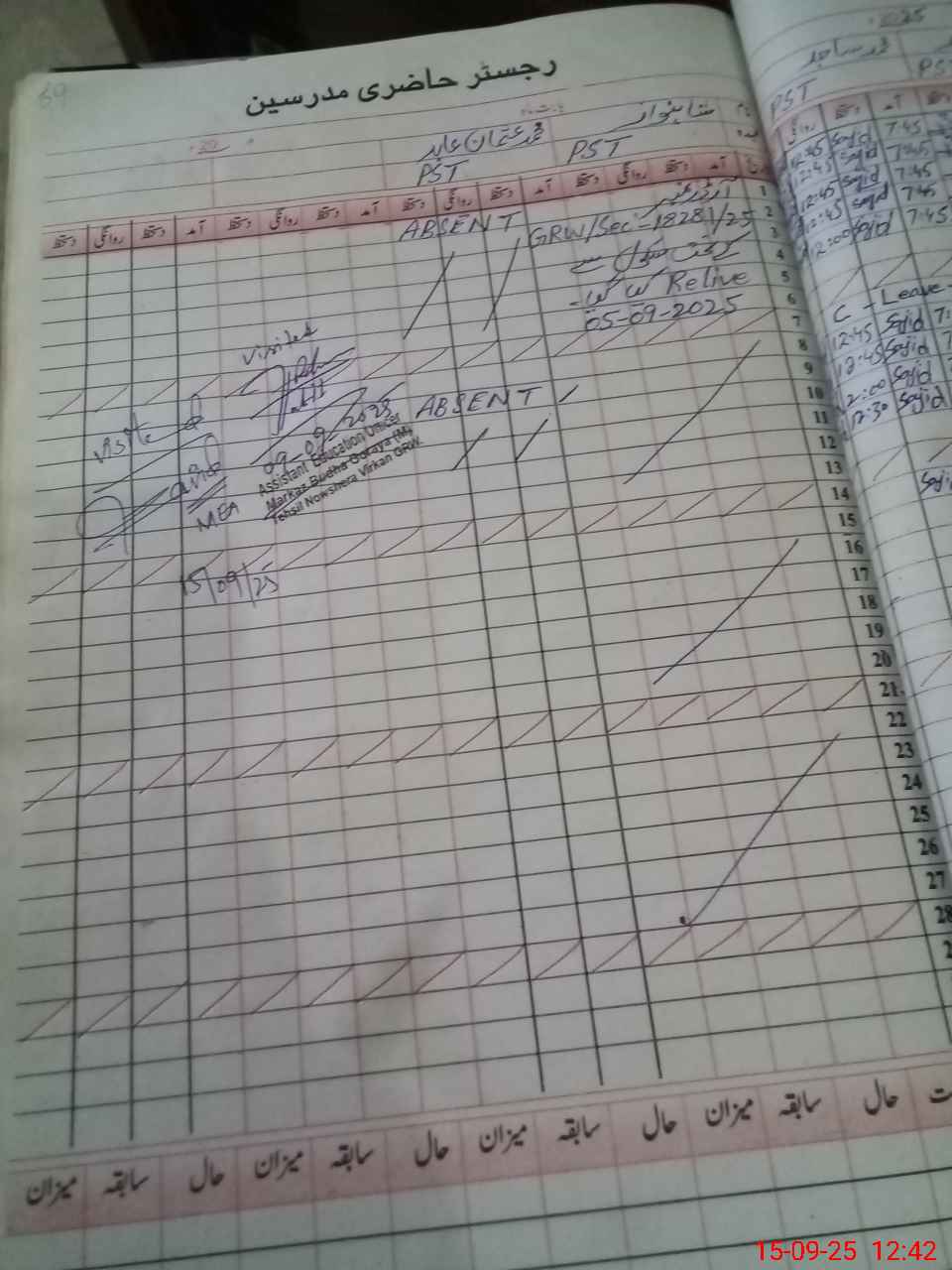 | CNIC | Full Name | Designation | R/C | Absence During Last Calender Month |