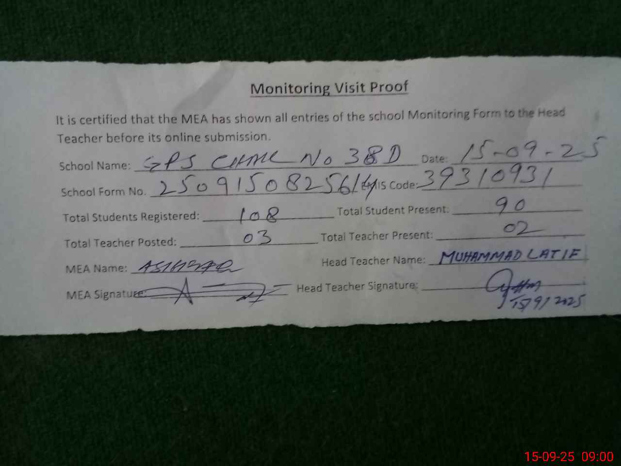 | Monitoring Date: 15-09-2025 | Start Time: 15-09-2025 08:25 AM | End Time: 15-09-2025 09:01 AM | Name of MEA: AS**** MO**** UDDI**** | |