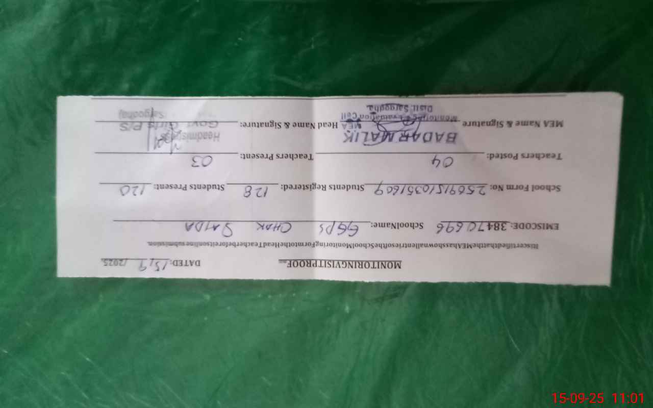 | EMIS Code: 38470696 | Name of School: GGPS CHAK SAIDA | |||