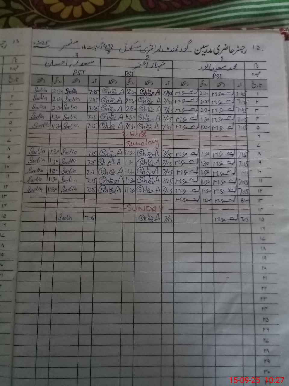 | Name: MU**** SA**** AN**** Designation: (School Headmaster's/Headmistress's) PST Phone/Cell Number: 03**** |