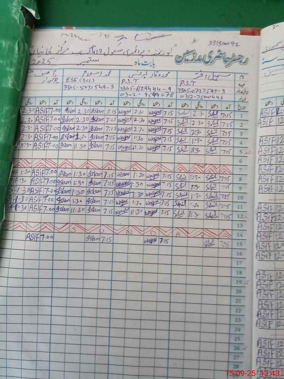 | CNIC | Full Name | Designation | R/C | Absence During Last Calender Month |