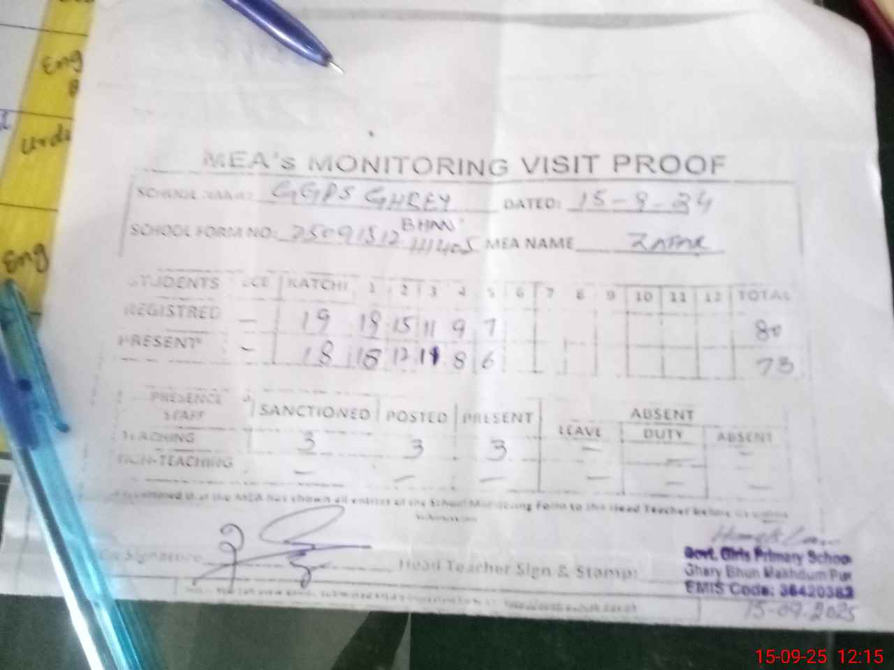 | EMIS Code: 36420382 | Name of School: GGPS GHAREY BHAN,KHANEWAL | |||