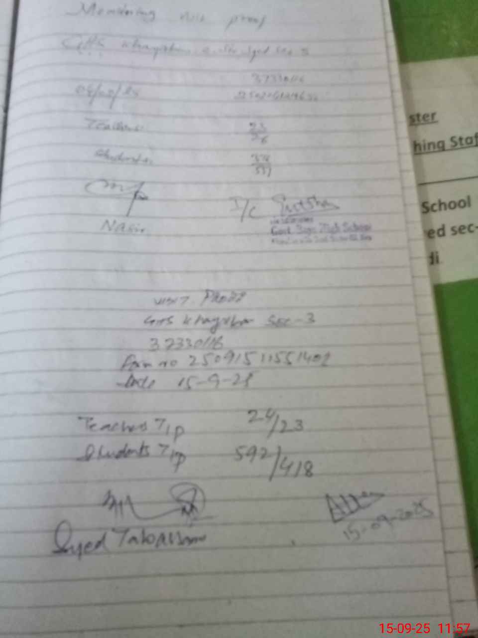 | Attendance Register | Head Teacher | MEA with School | Visit Proof |