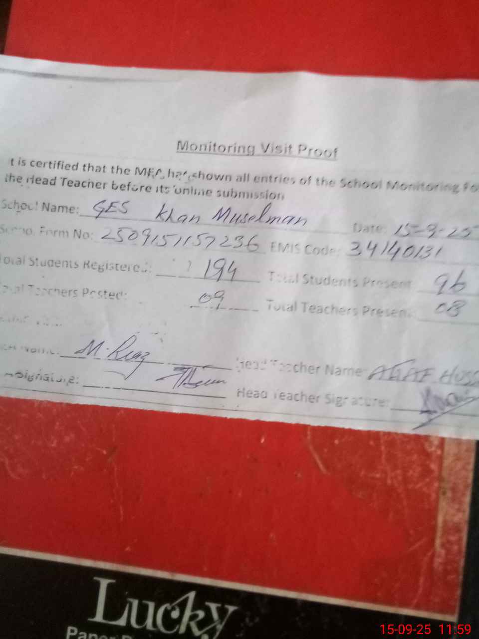 | EMIS Code: 34140131 | Name of School: GES KHAN MUSALMAN | |||