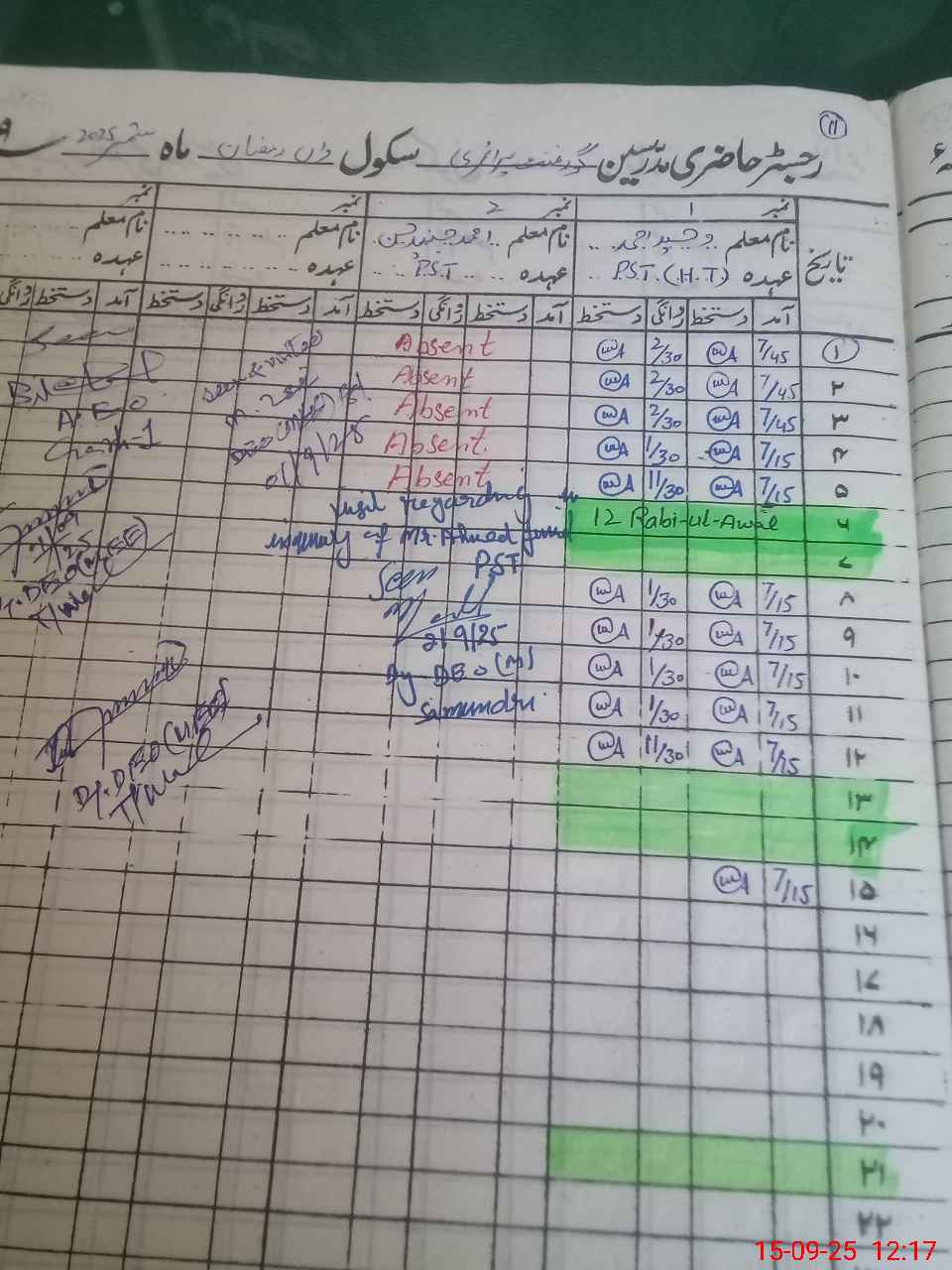 | CNIC | Full Name | Designation | R/C | Absence During Last Calender Month |