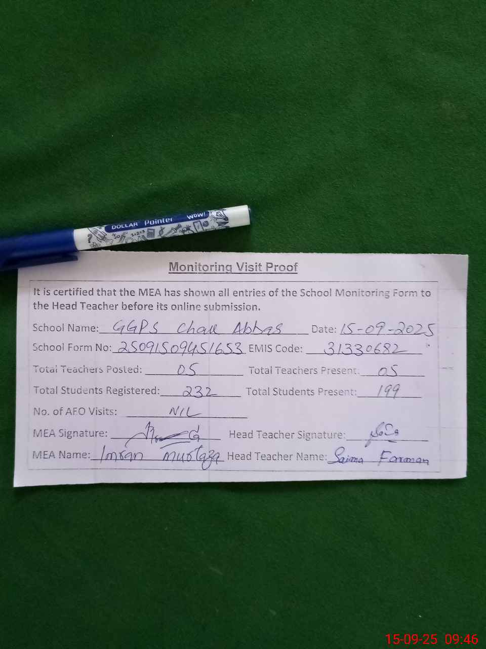 | EMIS Code: 31330682 | Name of School: GGPS CHAK ABBAS | |||