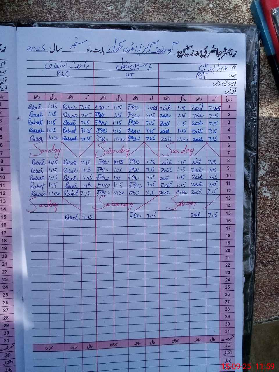| Name: Ya**** Iq**** Designation: (School Headmaster's/Headmistress's) PST Phone/Cell Number: 03**** |