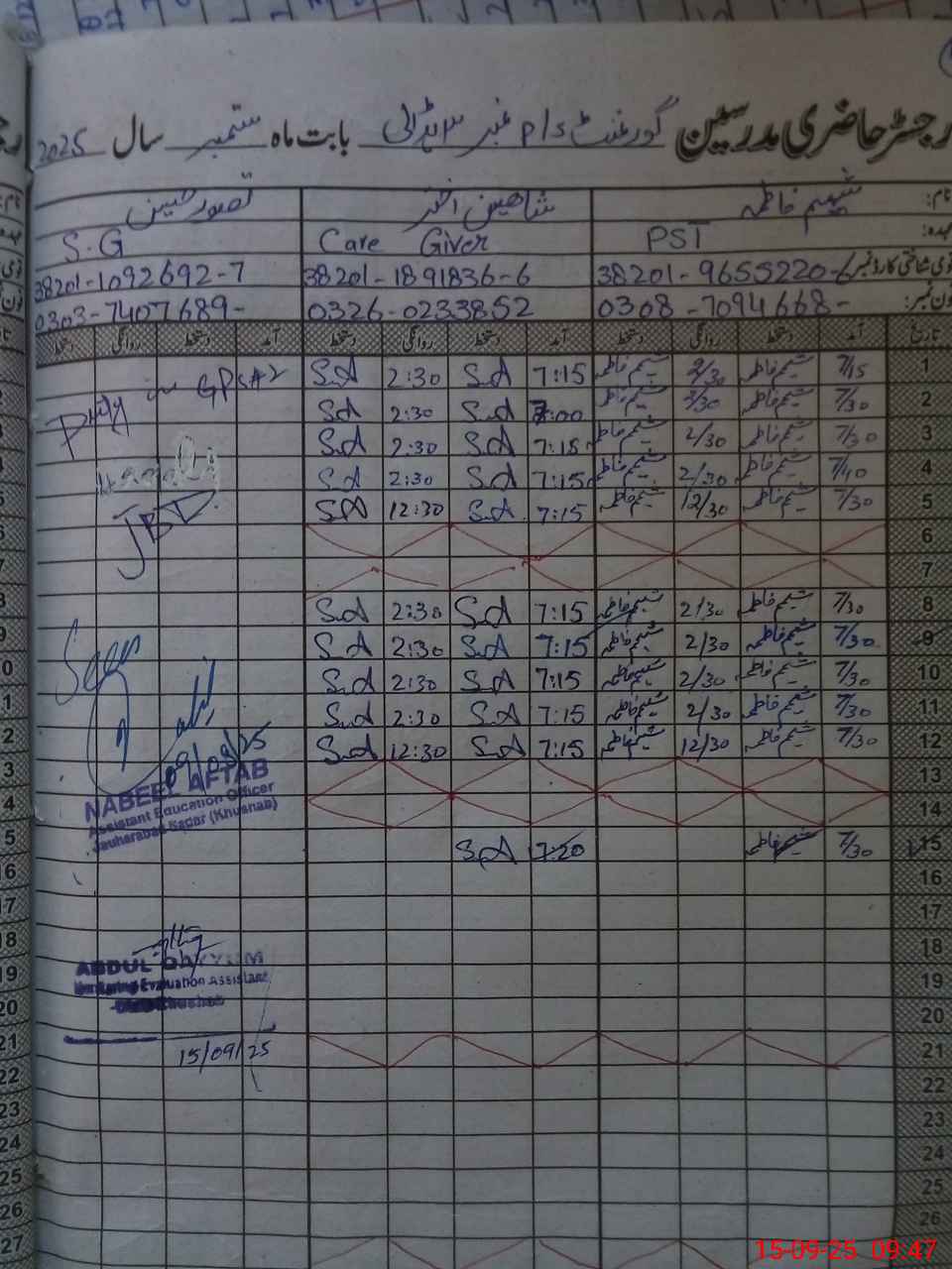 | Name: Qa**** Ab**** Designation: (School Headmaster's/Headmistress's) PST Phone/Cell Number: 03**** |