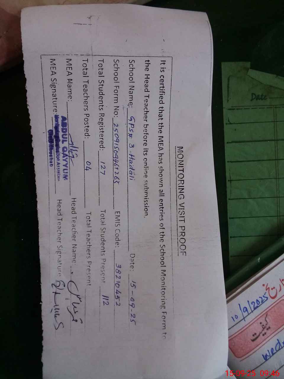 | EMIS Code: 38210452 | Name of School: GPS NO. 3 HADALI | |||