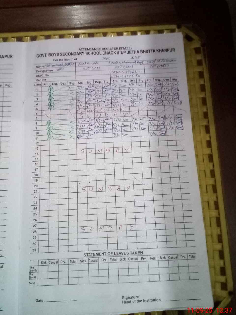| Name: MAk**** Designation: (School Headmaster's/Headmistress's) S H M Phone/Cell Number: 03**** |