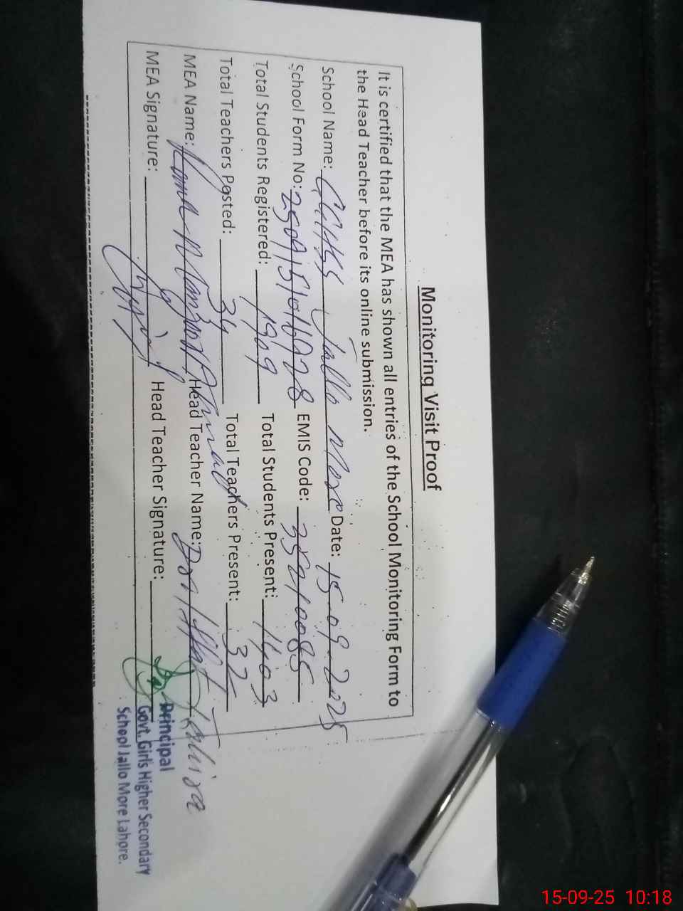 | Certified that this School was Inspected by the Undersigned MEA/DMO Today and the Information Stated Above is as Per Record. | |||||