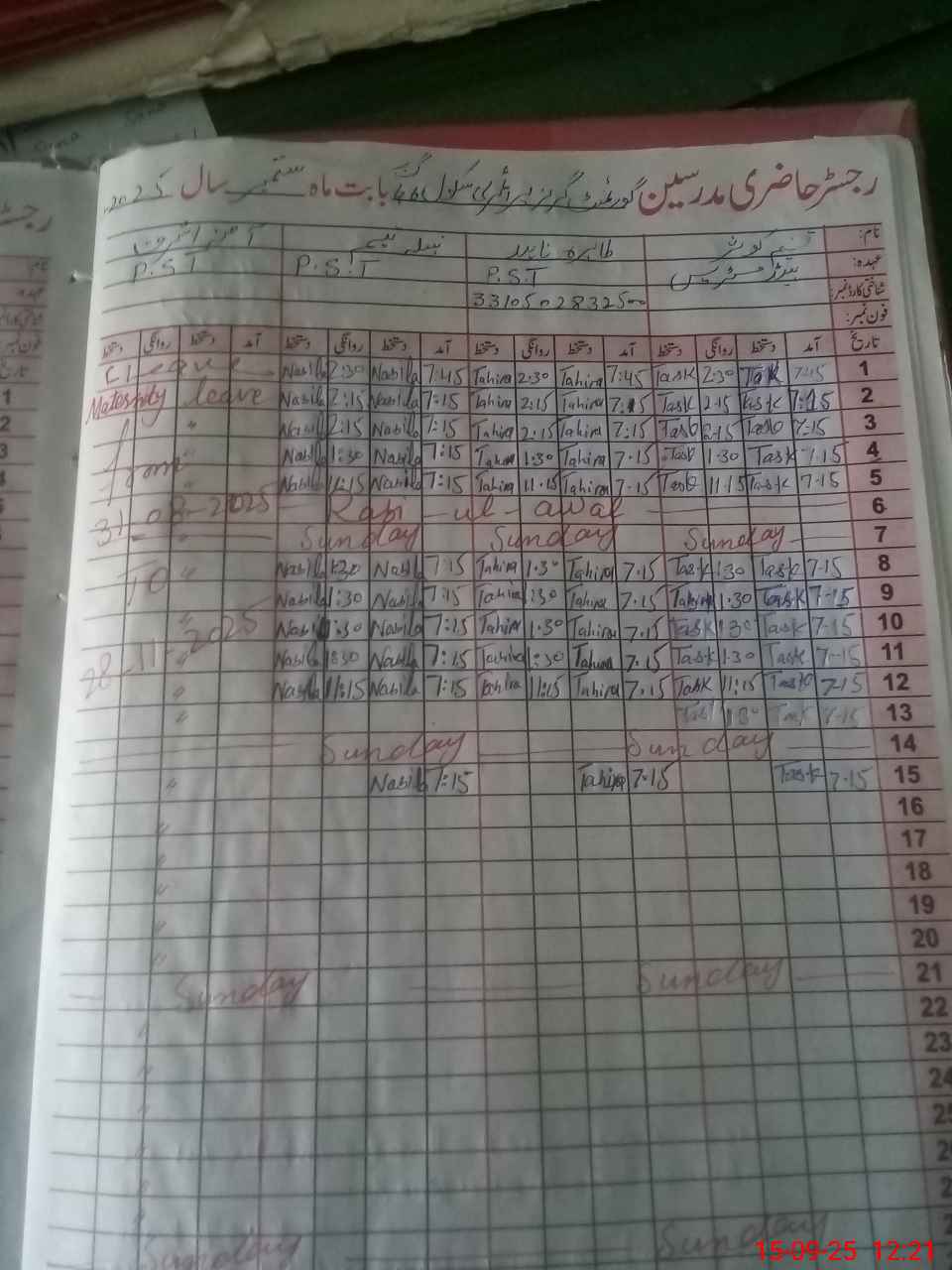 | Name: TA**** KA**** Designation: (School Headmaster's/Headmistress's) PST Phone/Cell Number: 03**** |