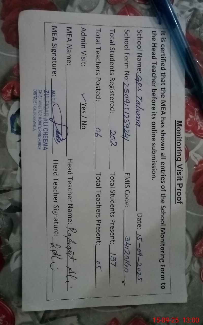 | EMIS Code: 34120140 | Name of School: GPS TALWARA | |||
