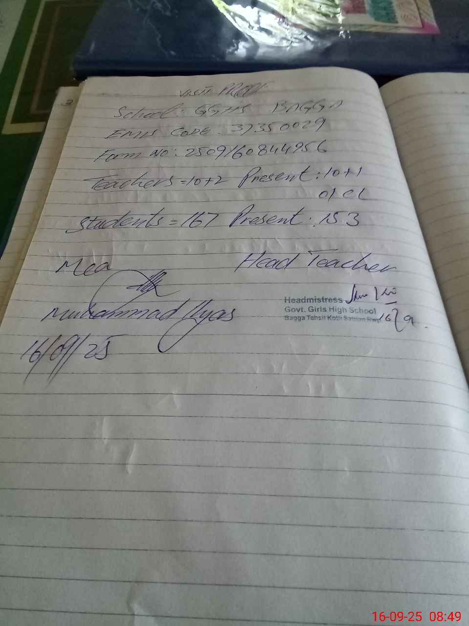 | EMIS Code: 37350029 | Name of School: GGHS BAGGA | |||