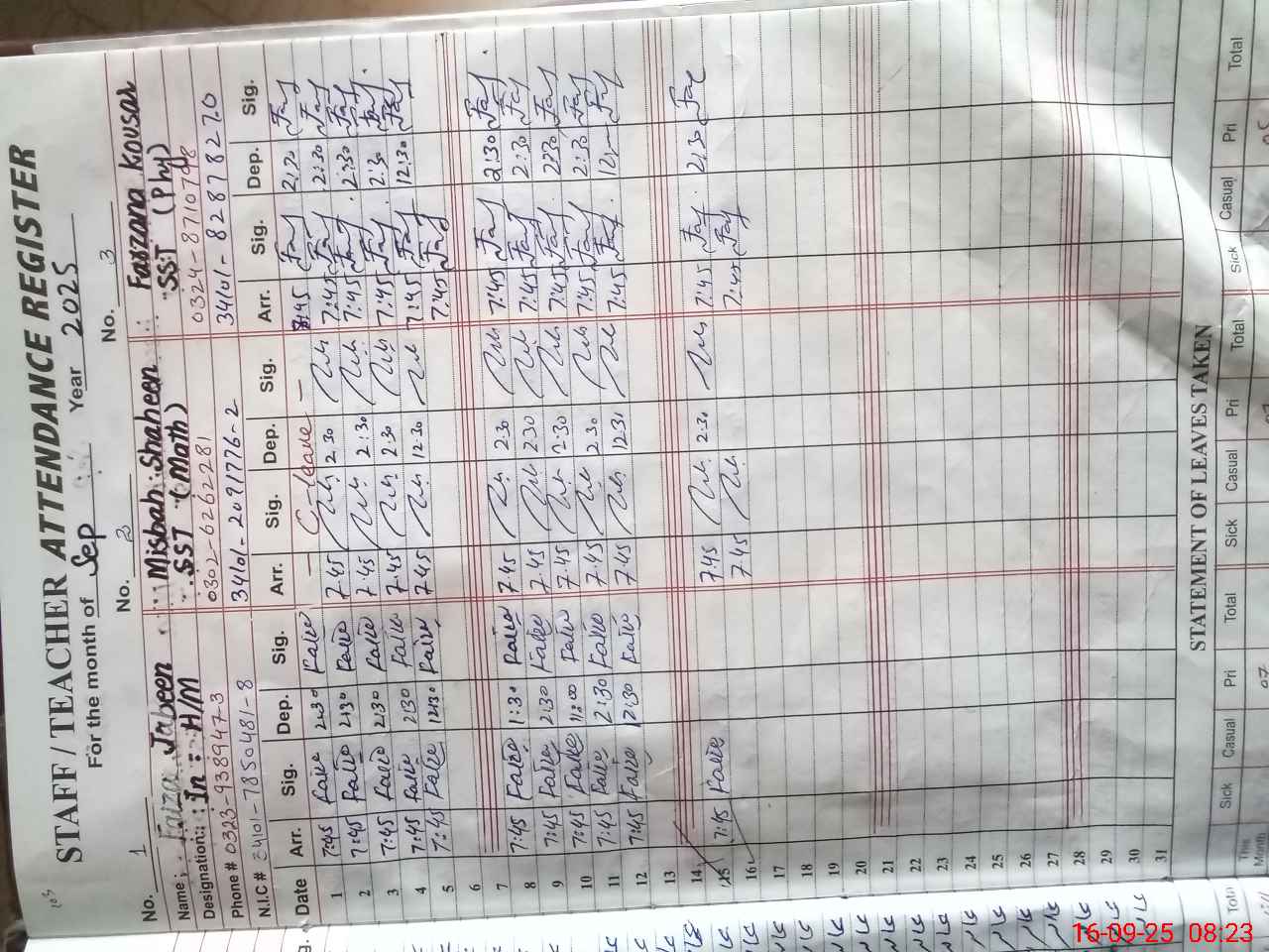| Name: Fa**** Ja**** Designation: (School Headmaster's/Headmistress's) SSE Phone/Cell Number: 03**** |