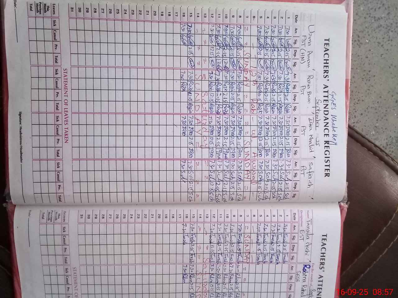 | Name: Uz**** Am**** Designation: (School Headmaster's/Headmistress's) PST Phone/Cell Number: 03**** |