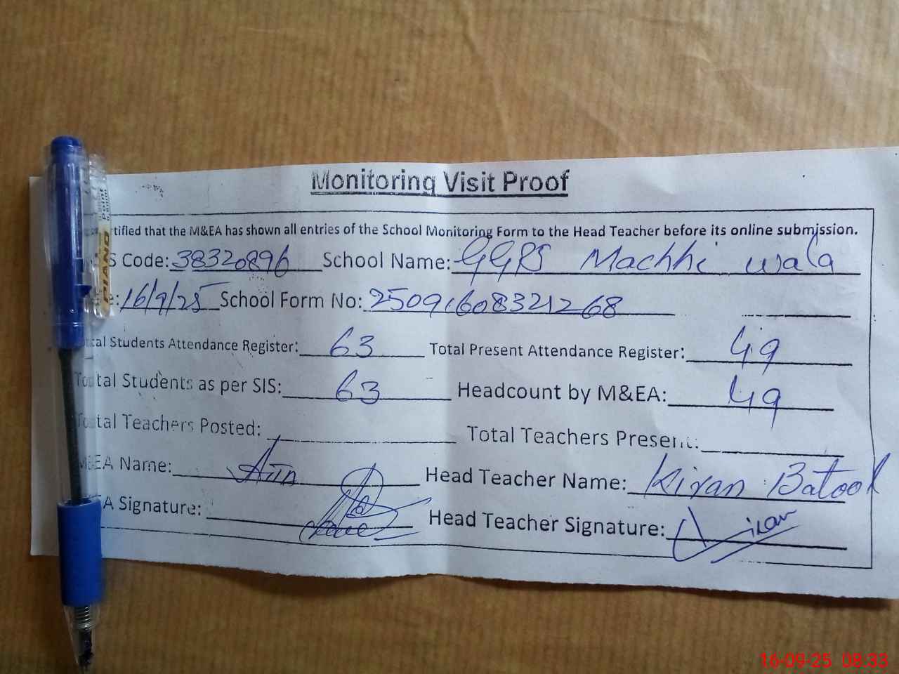 | EMIS Code: 38320896 | Name of School: GGPS MACHHI WALA | |||