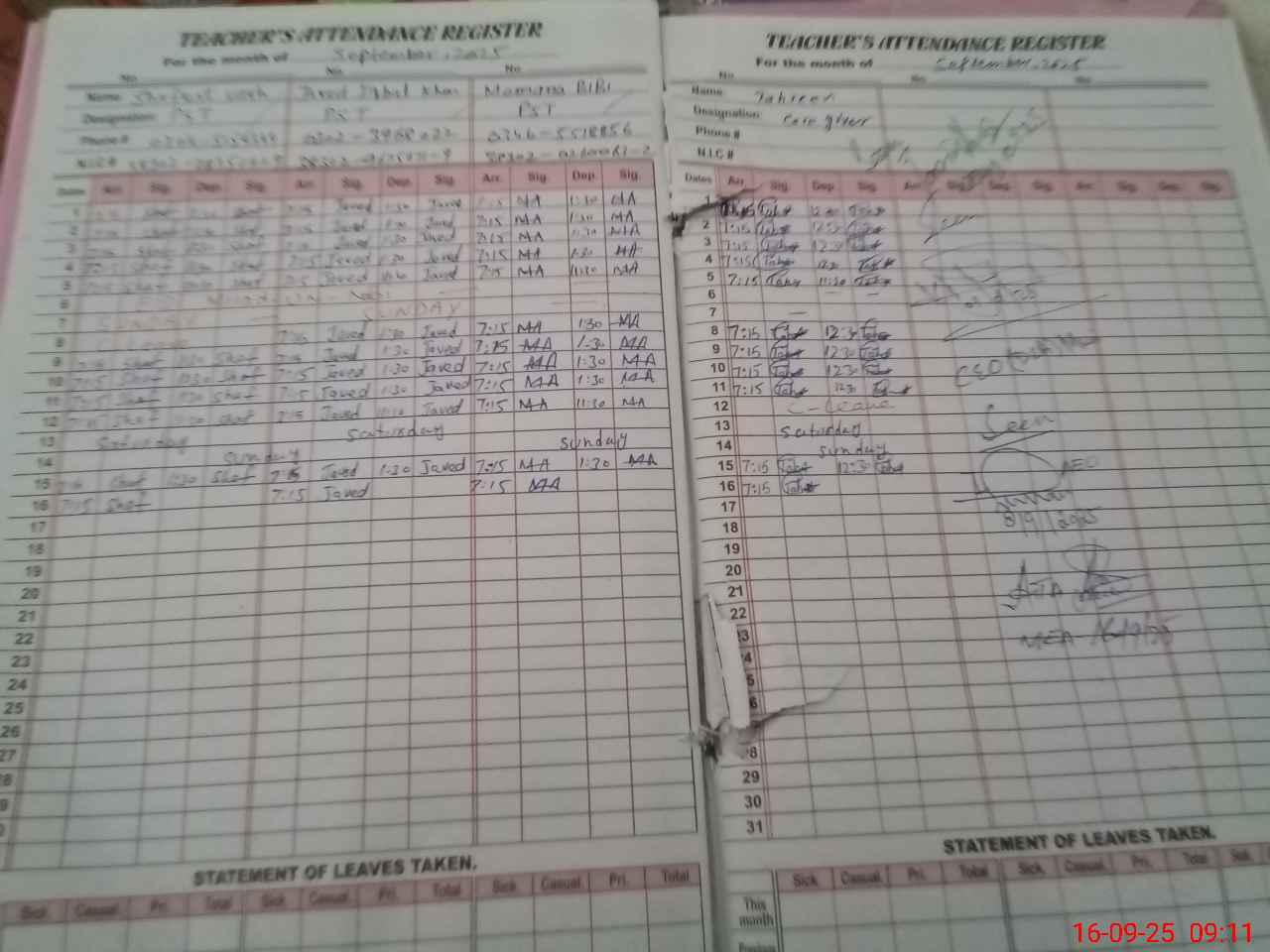 | Name: Sh**** ul**** Kh**** Designation: (School Headmaster's/Headmistress's) PST Phone/Cell Number: 03**** |