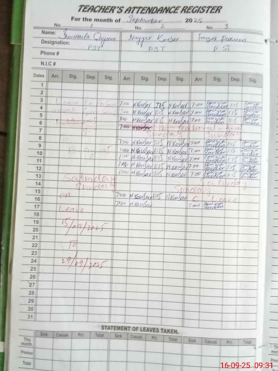 | 33**** | Sh**** Qa**** | PST | Regular | 0 | 0 | 0 | 0 | 0 | 0 | 0 | 0 | 0 | Absent (Un-Authorized) |