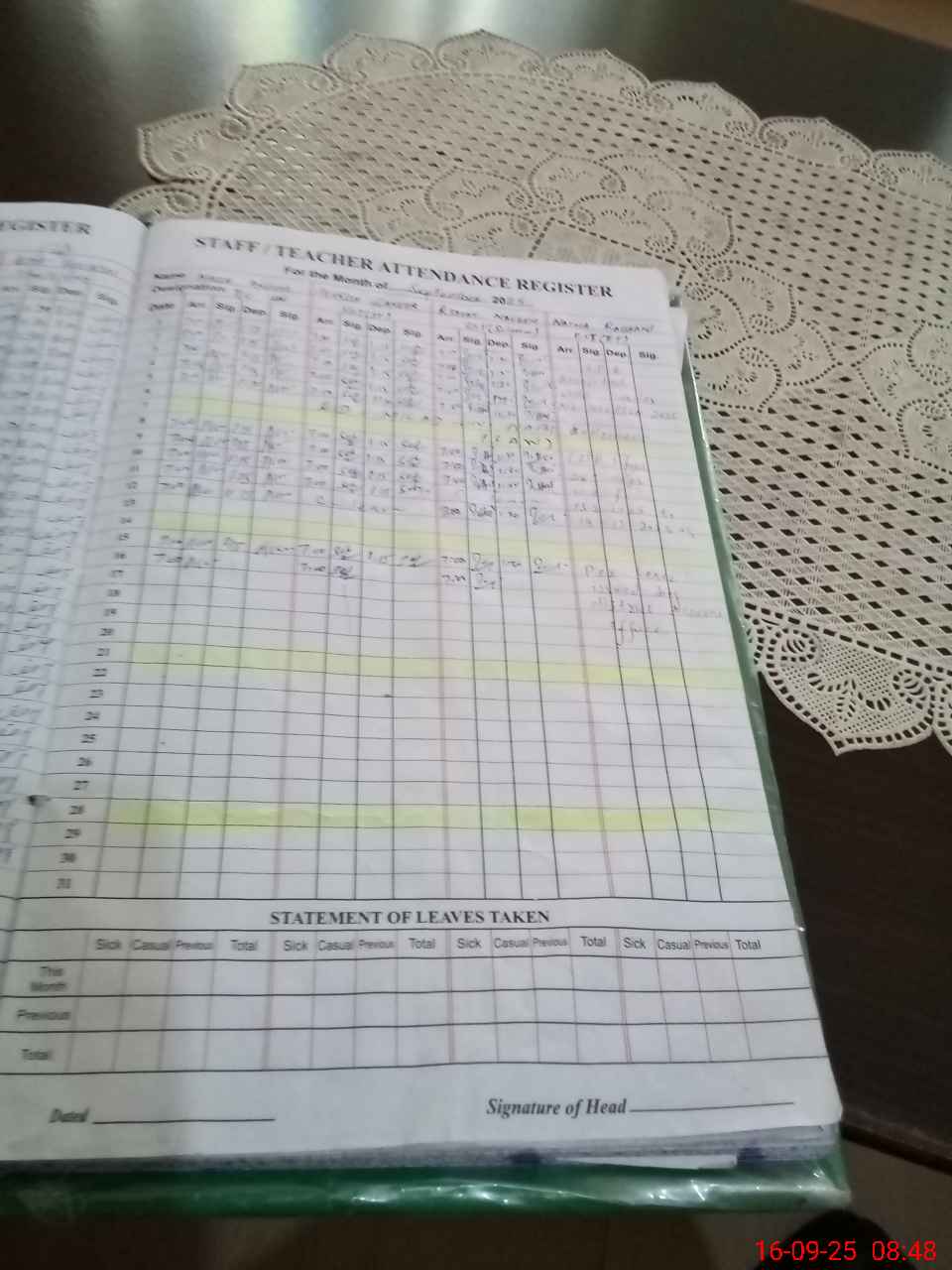 | CNIC | Full Name | Designation | R/C | Absence During Last Calender Month |