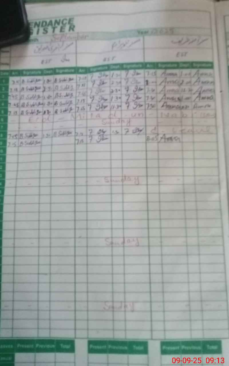| CNIC | Full Name | Designation | R/C | Absence During Last Calender Month |