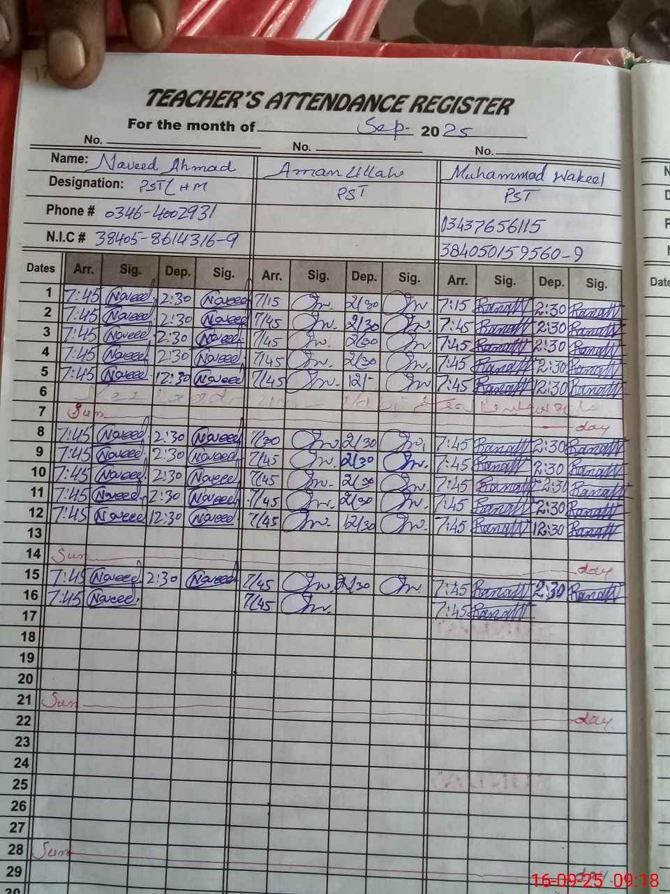 | Name: Na**** Ah**** Designation: (School Headmaster's/Headmistress's) PST Phone/Cell Number: 03**** |