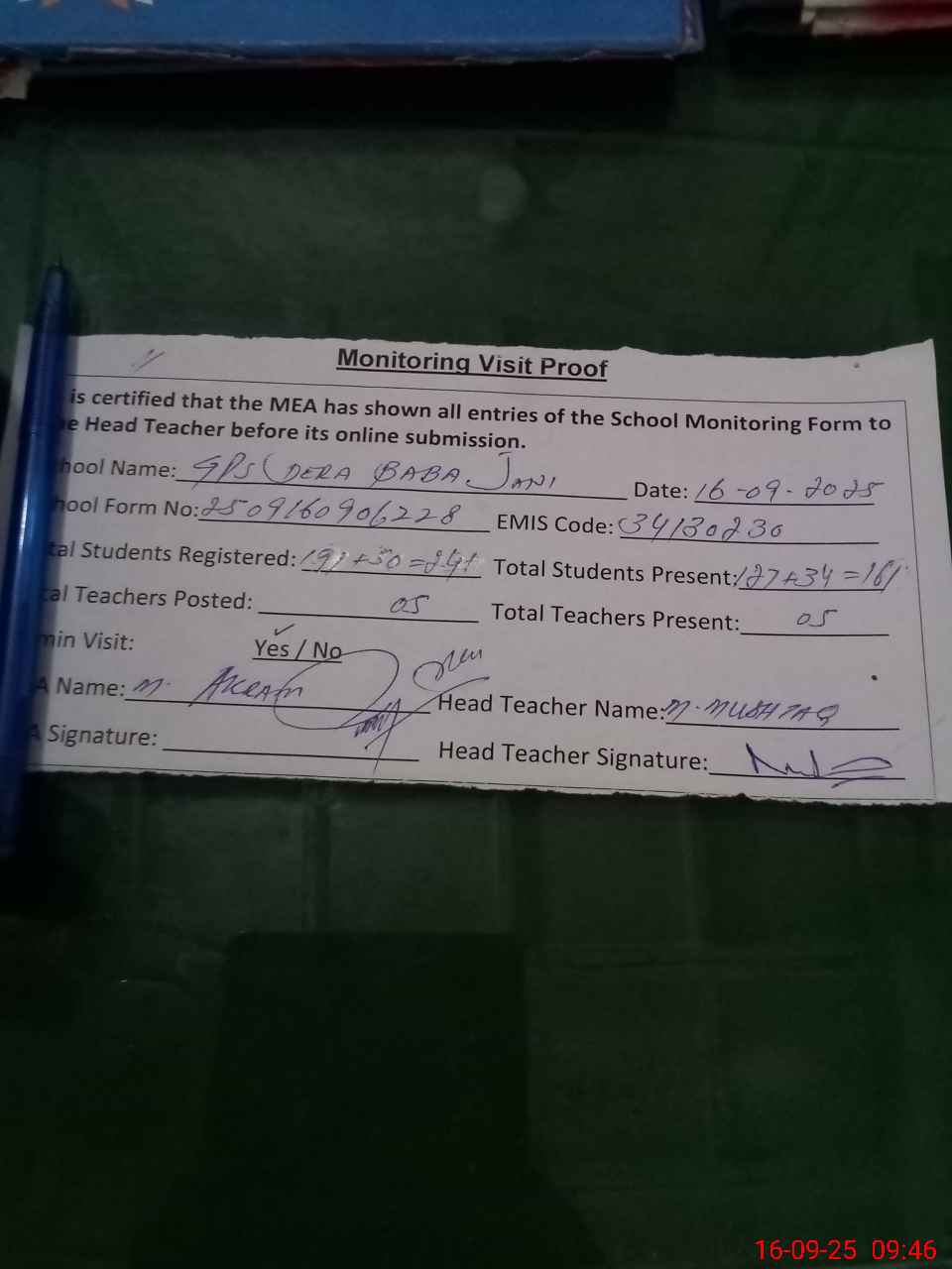 | EMIS Code: 34130230 | Name of School: GPS DERA BABA JANI | |||