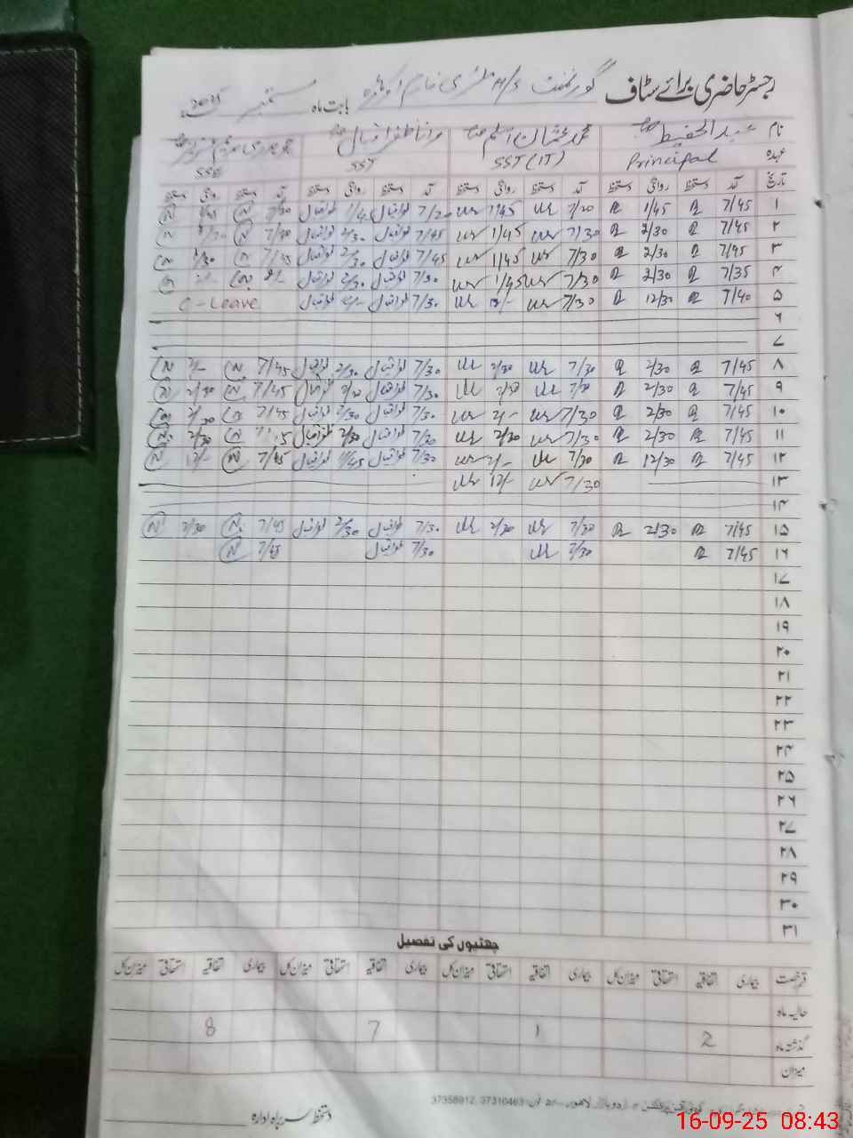 | Name: Ab**** Ha**** Designation: (School Headmaster's/Headmistress's) I/C Headmaster Phone/Cell Number: 03**** |