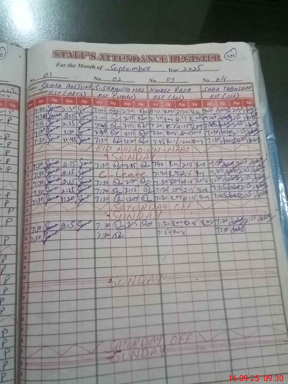| Monitoring Date: 16-09-2025 | Start Time: 16-09-2025 09:05 AM | End Time: 16-09-2025 09:51 AM | Name of MEA: Mu**** Iq**** | |