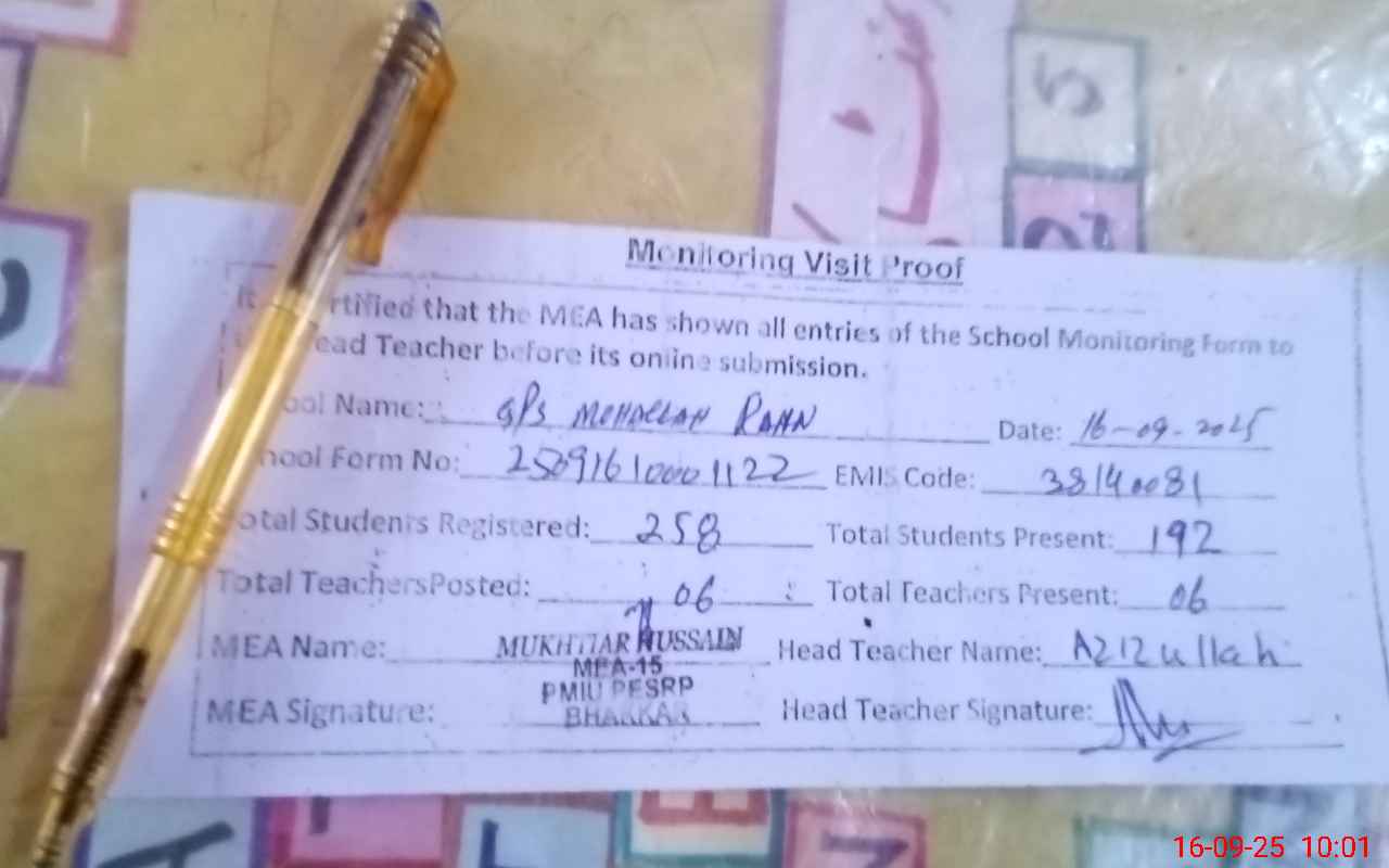 | EMIS Code: 38140081 | Name of School: GPS MOHALLA RANN | |||