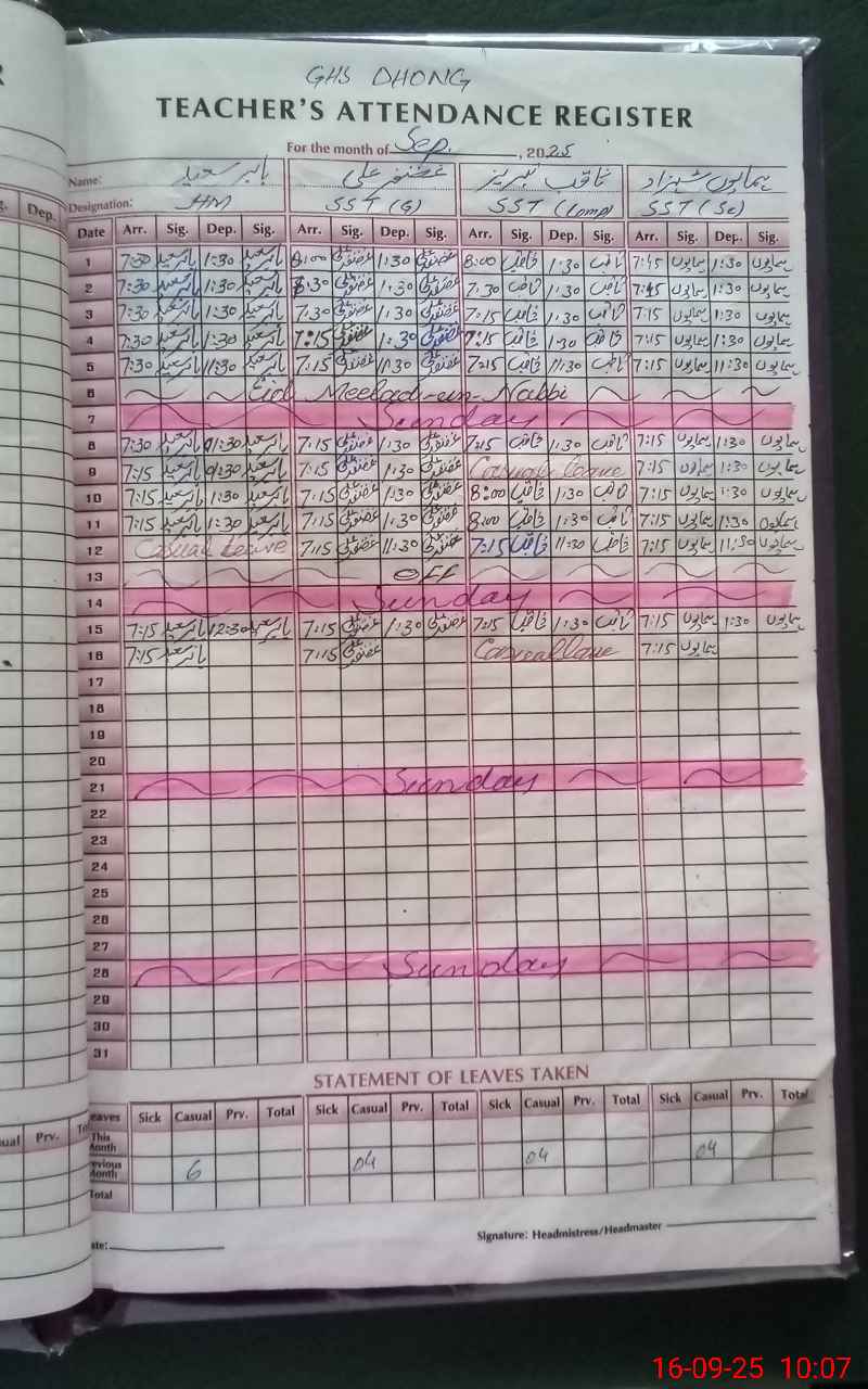 | CNIC | Full Name | Designation | R/C | Absence During Last Calender Month |