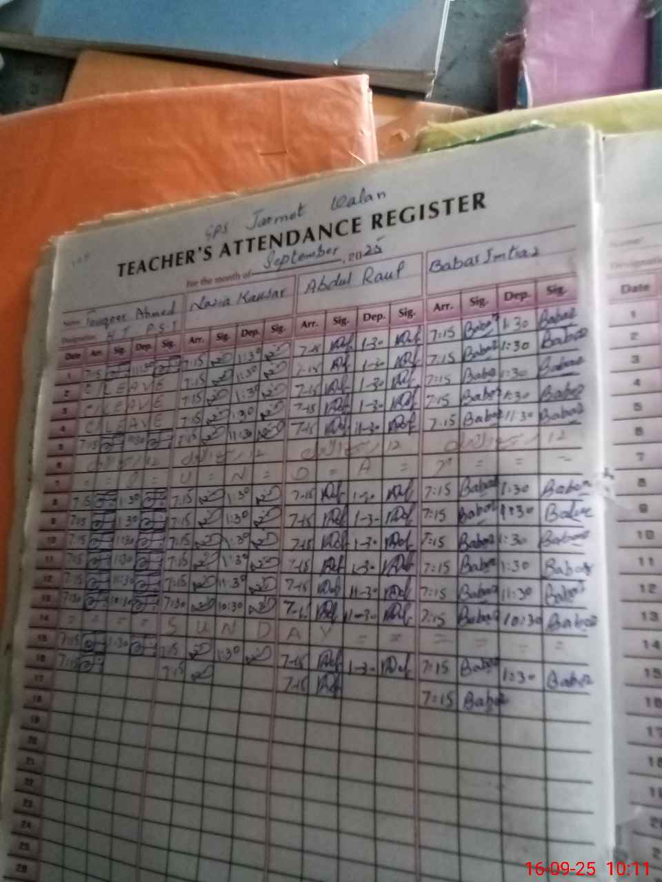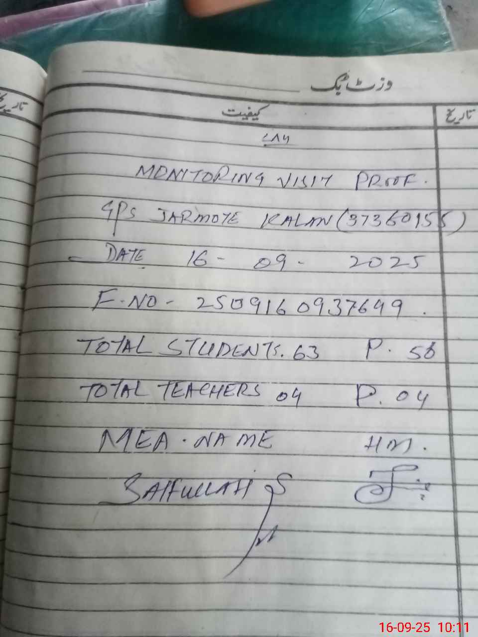 | Attendance Register | Head Teacher | MEA with School | Visit Proof |