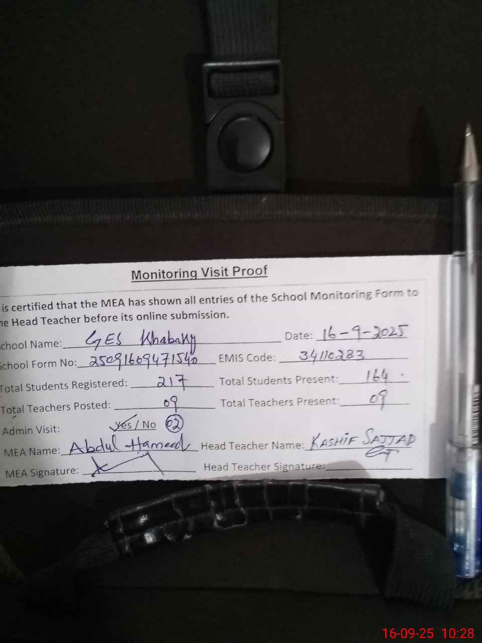 | Certified that this School was Inspected by the Undersigned MEA/DMO Today and the Information Stated Above is as Per Record. | |||||