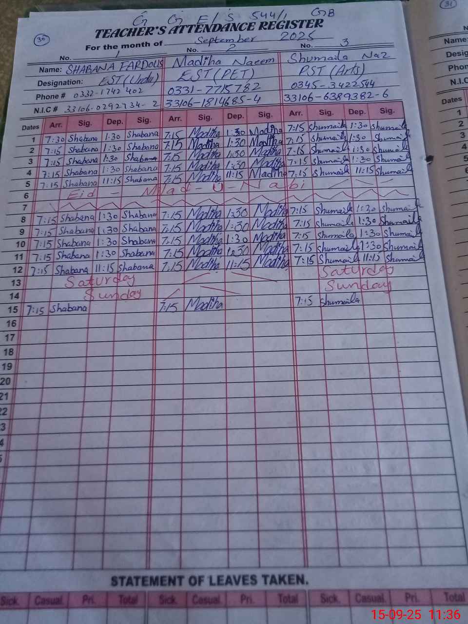 | Name: SH**** FA**** Designation: (School Headmaster's/Headmistress's) EST (GENERAL ) Phone/Cell Number: 03**** |