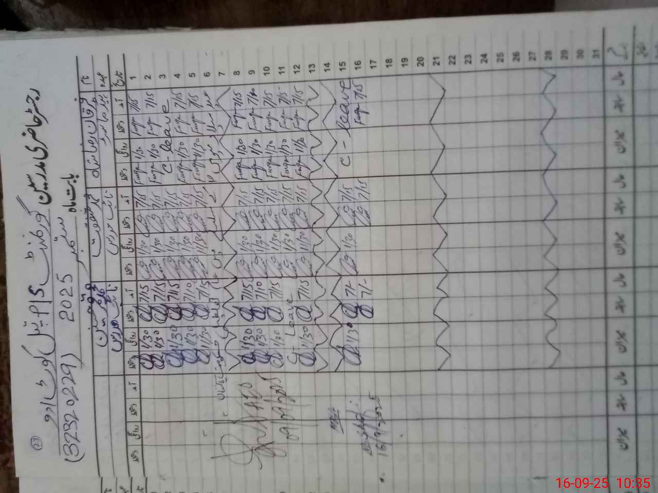 | CNIC | Full Name | Designation | R/C | Absence During Last Calender Month |