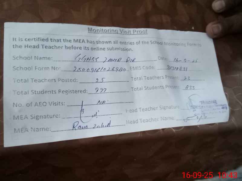 | EMIS Code: 31310831 | Name of School: GGHSS ZAHIR PIR | |||