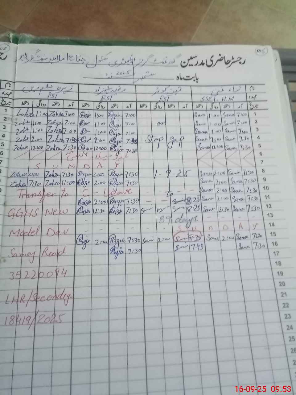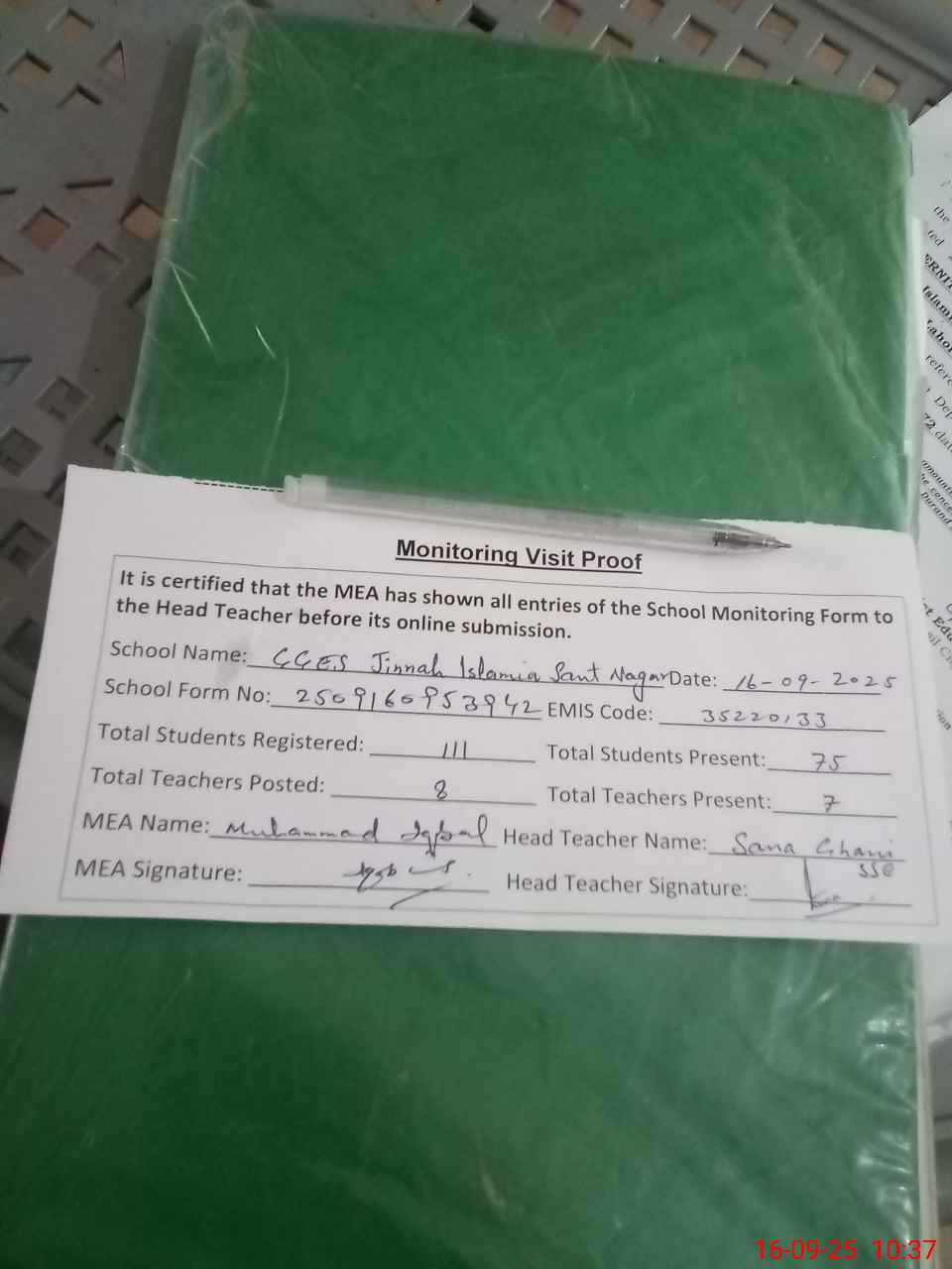 | EMIS Code: 35220133 | Name of School: GGES JINNAH ISLAMIA SANAT NAGAR | |||
